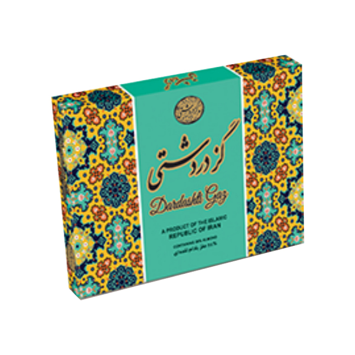 تجربه طعم گز دردشتی، یک سفر حسی به قلب اصفهان است. با باز کردن بسته بندی شکیل و سنتی آن، عطر دل انگیز گلاب و پسته فضای اطراف را پر میکند. این برند در تنوعی از مغز پسته، بادام و گردو به دو شکل لقمه و آردی محصولات خود را تولید کرده است.