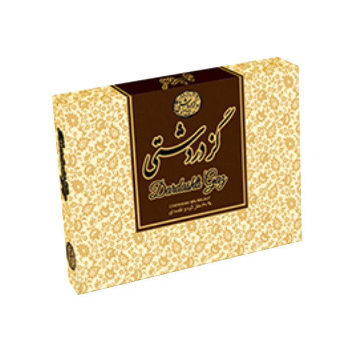 تجربه طعم گز دردشتی، یک سفر حسی به قلب اصفهان است. با باز کردن بسته بندی شکیل و سنتی آن، عطر دل انگیز گلاب و پسته فضای اطراف را پر میکند. این برند در تنوعی از مغز پسته، بادام و گردو به دو شکل لقمه و آردی محصولات خود را تولید کرده است.