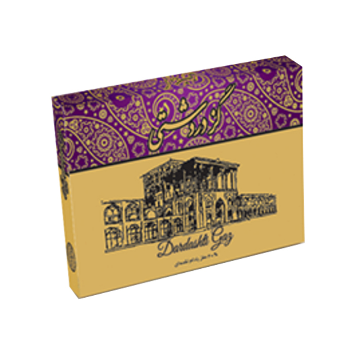 تجربه طعم گز دردشتی، یک سفر حسی به قلب اصفهان است. با باز کردن بسته بندی شکیل و سنتی آن، عطر دل انگیز گلاب و پسته فضای اطراف را پر میکند. این برند در تنوعی از مغز پسته، بادام و گردو به دو شکل لقمه و آردی محصولات خود را تولید کرده است.
