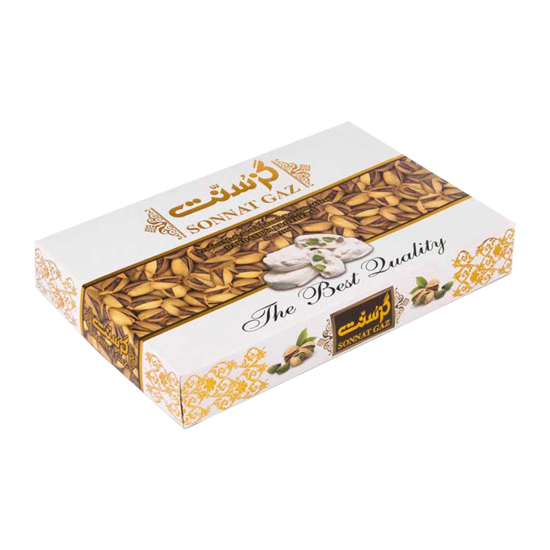 این برند با بهرهگیری از بهترین و طبیعیترین مواد اولیه و پرهیز از استفاده از هرگونه مادهی نگهدارنده، محصولی سالم و باکیفیت ارائه میدهد. بستهبندی شکیل و زیبای گز سنت، برگرفته از نقش و نگارهای اصیل اصفهان، آن را به هدیهای منحصربهفرد و به یادماندنی تبدیل کرده است. این گز نرم و خوشبافت، با طعم ملایم و عطر گلاب، تجربهای از اصیلترین طعمهای ایران را برای شما به ارمغان میآورد. گز سنت اصفهان، تنها یک شیرینی نیست، بلکه یادگاری از فرهنگ و هنر نصف جهان است که برای مهمانیها، عیدها و مناسبتهای ویژه، انتخابی ایدهآل محسوب میشود.