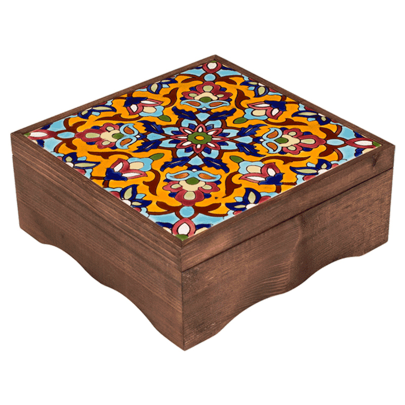 با بسته بندی زیبا و کادوئی جعبه چوبی با کاشی اصیل