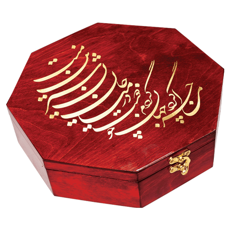 با بسته بندی زیبا و کادوئی جعبه چوبی و خط نستعلیق